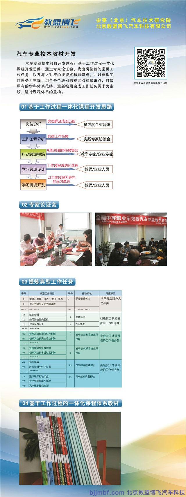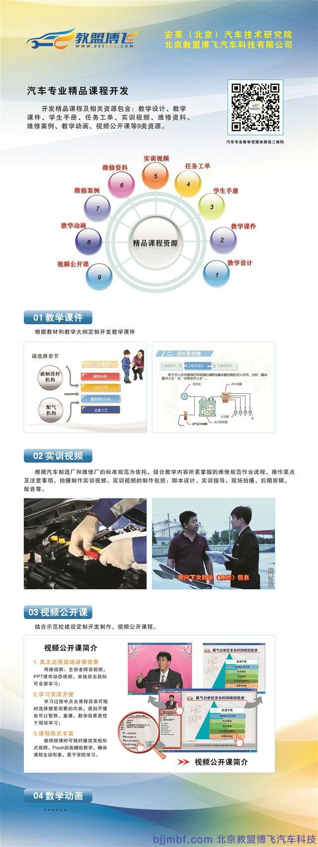 北京教盟博飛汽車科技有限公司是安萊(北京)汽車技術(shù)研究院投資,是以教學輔助信息平臺為汽車專業(yè)院校訂制開發(fā)實戰(zhàn)教學資源庫,拍攝制作實訓精品課程以及校本教材。同時,邀約國家級汽車行業(yè)專家指導技能大賽和專業(yè)建設(shè),提供高品質(zhì)師資培訓等等。全方位支持院校打造國家級汽車示范專業(yè)!