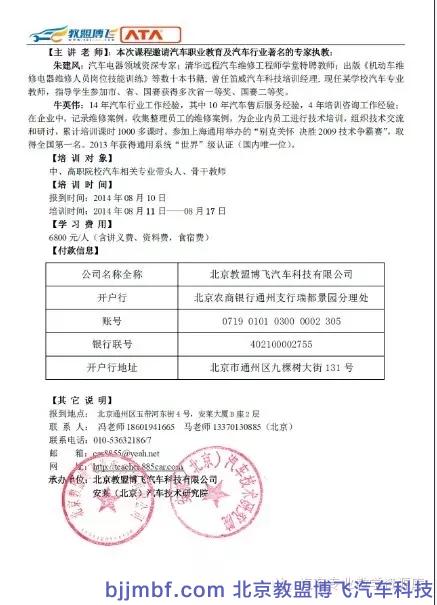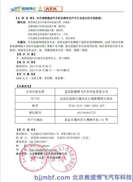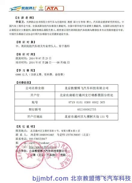 暑期將至,北京教盟博飛汽車科技有限公司、安萊(北京)汽車技術(shù)研究院公司聯(lián)合,組織“職業(yè)院校汽車專業(yè)師資培訓(xùn)班,誠邀您的參與