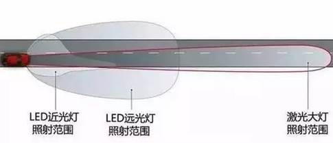 和LED相比,激光大燈所占體積更小,能耗更低,但是產(chǎn)生的光線強(qiáng)度比LED強(qiáng)很多,激光燈源擁有近乎LED遠(yuǎn)光燈兩倍的照射距離,照射范圍大大增加。
