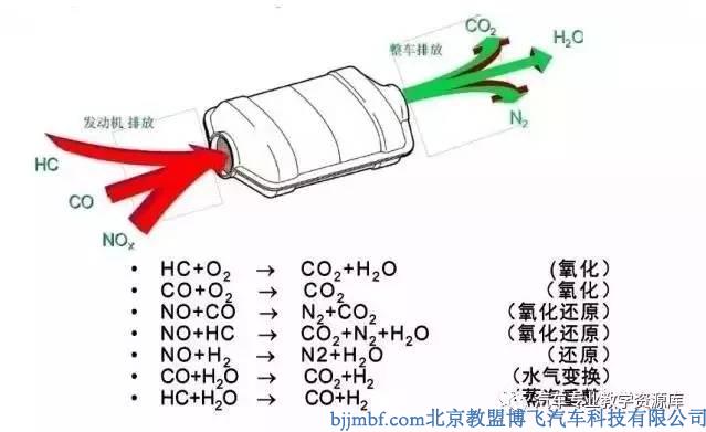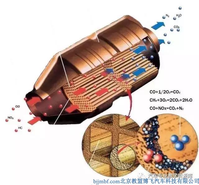 ? ? ? ?位于排氣管前端的三元催化器,當(dāng)發(fā)動(dòng)機(jī)排出的高溫尾氣通過(guò)其內(nèi)部蜂巢結(jié)構(gòu)時(shí),在700攝氏度高溫的作用下,內(nèi)壁涂層附著的銠、鈀、二氧化鉻等金屬等催化劑,與廢氣中有害的氮氧化物、碳?xì)浠衔铩⒁谎趸及l(fā)生反應(yīng),轉(zhuǎn)為無(wú)害的水、二氧化碳和氮?dú)狻?