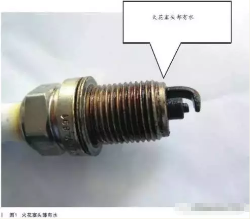 那么火花塞頭部潮濕的液體是什么?無(wú)意中聞了一下它的氣味,發(fā)現(xiàn)不對(duì)勁,基本上聞不到汽油味,答案只有一個(gè),那就是水(防凍液),如圖1所示。