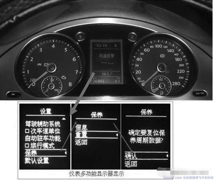 通過多功能方向盤上的按鍵進行保養(yǎng)周期復(fù)位的方法。