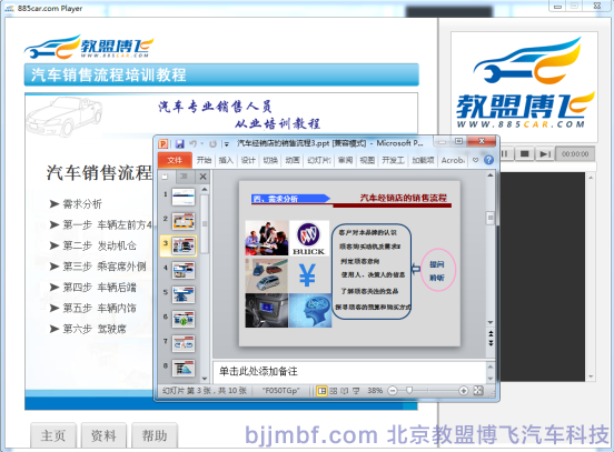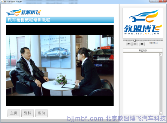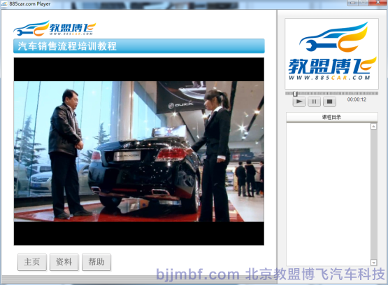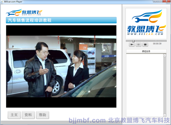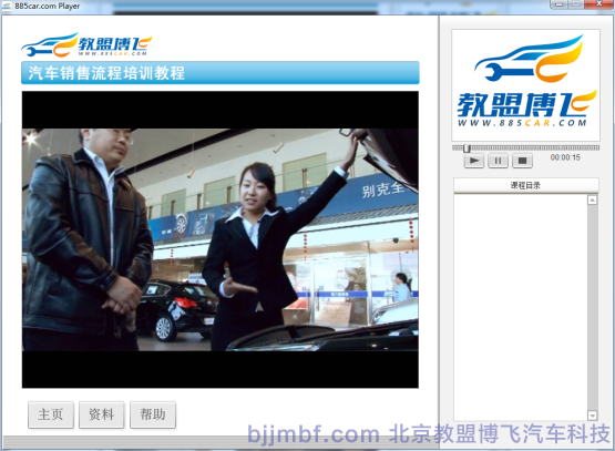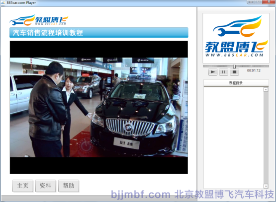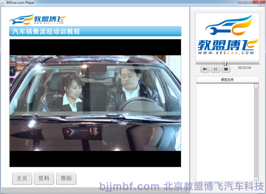 《汽車銷售流程視頻教程》全景視頻教學(xué)系統(tǒng)結(jié)合廠家標(biāo)準(zhǔn)服務(wù)規(guī)范流程,標(biāo)準(zhǔn)化操作完成預(yù)約客戶、接車、維修質(zhì)檢、結(jié)算交車跟蹤服務(wù)等一系列完整售后服務(wù)流程;教學(xué)系統(tǒng)運用平面、視頻、多維動畫技術(shù)形成一套集講授、實景演示、重點回顧、原廠服務(wù)商務(wù)標(biāo)準(zhǔn)等立體視頻教學(xué)系統(tǒng);完整詳細(xì)的汽車服務(wù)過程中標(biāo)準(zhǔn)流程,服務(wù)禮儀、標(biāo)準(zhǔn)話術(shù)、各種細(xì)節(jié)及服務(wù)技巧;彌補(bǔ)傳統(tǒng)視頻畫面單一,重點不突出,標(biāo)準(zhǔn)規(guī)范不明顯等缺點;立體視頻教學(xué)系統(tǒng)同時具備一定的自動考核、教學(xué)環(huán)境識別等功能,從而提高學(xué)習(xí)和訓(xùn)練效率。