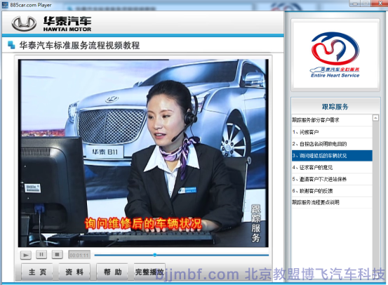 1、汽車標(biāo)準(zhǔn)服務(wù)流程視頻教程教學(xué)視頻: